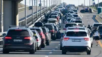 Очередь автомобилей для проезда по Крымскому мосту начала резко увеличиваться в выходные дни . Не уменьшилась она и в первые 2 дня рабочей недели. На утро вторника со стороны Тамани в очереди находилось более 1300 автомобилей, время ожидания длилось более 3-х часов.