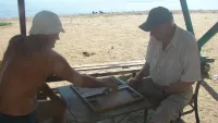 Мужчинам пенсионного возраста чувство скуки не ведомо! Пусть не активный отдых, а спокойный проводят они на берегу уголка отдыха Сморжевского. Три лавочки под навесом они забронировали давно. Даже сами не помнят, как давно. В любое время года: зимой, весной, летом, осенью мужчины выходят из своих квартир многоэтажных домов, расположенных рядом, сюда. Играют и в шахматы, и в нарды, и в домино. Никто из окружающих за все время ни разу не уличил их ни в шуме, ни в скандалах, ни в разборках.