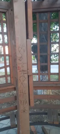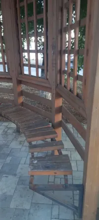 Посмотрите в каком состоянии беседки у Дворца Пионеров, которые поставили всего-лишь несколько лет назад. Прилагаю фотографии одной из беседок."
