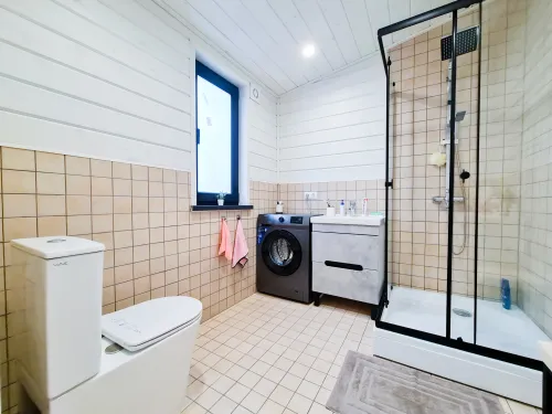 Отделка: внешняя и внутренняя отделка с использованием качественных материалов, включая окна, двери, всю электрику с розетками, выключателями и светильниками, полностью укомплектованный санузел и вентиляцию.