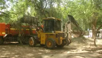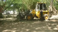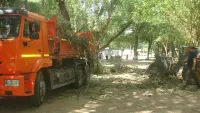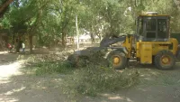 Под расчисткой находится территория со стороны скорой помощи и здания старой общественной бани. В уборке принимает участие техника "Зеленстроя". За остановочным павильоном " Фабрика- Кухня" скоро станет просторно.