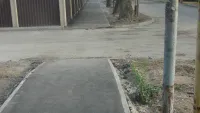 Но, увы, надежды не оправдались. Перед самым финишным этапом тротуара, подводящего непосредственно к заходу на территорию поликлиники, пандус решили не делать. Сход ограничили бордюром...