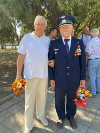 Принимал сегодня поздравления и летчик гражданской авиации Олег Аркадьевич Зарва. Он пришел в авиацию 18- летним пареньком. Закончил Кременчугское летное училище, затем Кировоградскую школу высшего пилотажа. Летал на таких самолетах как: Ан-2, Ан- 24, Ил- 16.