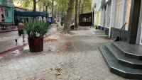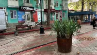 Также, специалисты мыли пешеходную зону на улице Ленина. Место работ оградили. Перед этим они чистили ливневки, вымыли скамейки и урны.