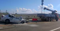 В результате ДТП водитель иномарки погиб. На месте происшествия работают сотрудники полиции, они выясняют все обстоятельства случившегося.