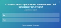 По результатам опроса межведомственная топонимическая комиссия примет соответствующее решение о присвоении наименования остановочному пункту.