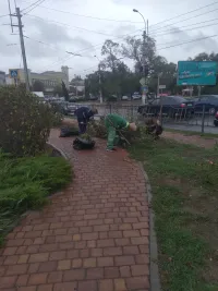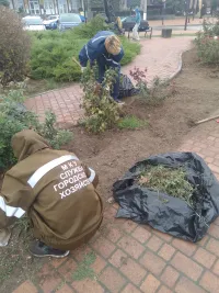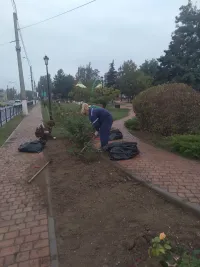 В сквере Воссоединения в Керчи продолжается осенняя обработка розария