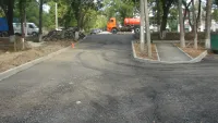 Заасфальтирована зона парковки, продолжается укладка тротуарной плитки на пешеходных дорожках. Установлены фонари освещения и камеры видеонаблюдения.