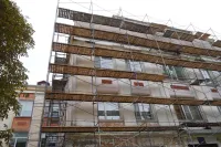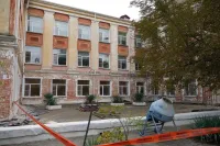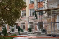 Керченская школа №11 дождалась, наконец, ремонта. Подрядчик начал его с ремонта фасада здания.