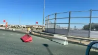 Напомним, они ограждают перекрытый участок дороги на путепроводе.