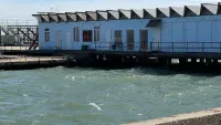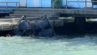 В Керчи на набережной море несколько дней «украшают» связанные бочки. Их прибило к старой водной станции, - передает Керчь.ФМ.