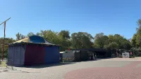 Также уже разбирают и детские различные аттракционы и батуты.