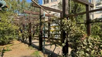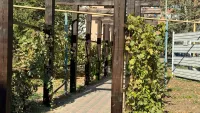 Виноград вернули на прежнее место, он теперь красиво смотрится на обновленной перголе.