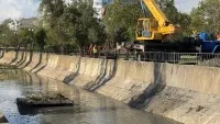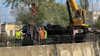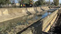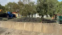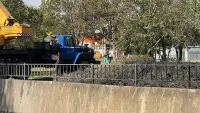 В Керчи на Вокзальном шоссе идет расчистка реки Мелек-Чесме. Часть тротуара из-за этого перекрыли. На газон высыпали ил и грязь из речки, - передает КерчьФМ.