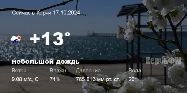 - Керчь от +9.4° до +12.4°С, 🌞 ясно, море: 19°C