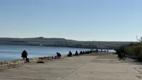 Также, к морю вышли и желающие выловить немного рыбки. С удочками можно было насчитать около 50 рыбаков, которые вылавливали бычок.