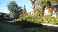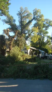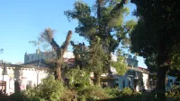 Порода деревьев- софора. Раскидистая крона и высота софор давно вызывали опасения у жильцов расположенных рядом домов...