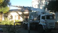На Театральной в Керчи сегодня работает 40-метровая вышка Крымэнерго из Феодосии.