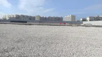 На территории выполнено благоустройство восточной стороны, где будет расположена  парковка для автомобилей. После возведения металлоконструкций строители приступят к укладке плитки и асфальта на прилегающих территориях.