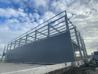 На ноябрь намечен следующий этап работ -  возведение шатра, установка металлоконструкции ледового поля. Необходимый материал уже находится на участке.  По периметру ледового поля установят опоры, на которые закрепят фермы, установят кровлю, окна, двери, обошьют металлопрофилем стены.