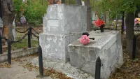 Городское кладбище. Памятник на могиле начальника Керченского торгового порта Пузанова Сергея Николаевича и его ведущего инженера.