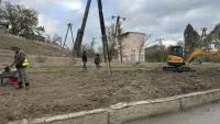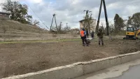 В Керчи на Телецентре поступили к занижению газонов вдоль дороги. Рабочие с помощью спецтехники собирают лишнюю земли в кучи, -передает КерчьФМ