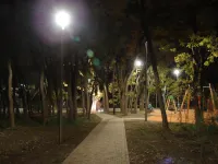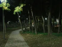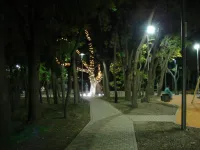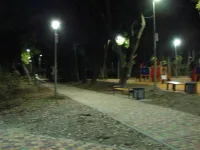 Освещены аллеи, детская и спортивная площадки.