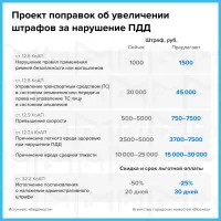 Авторы инициативы также предложили изменить условия оплаты штрафов. Водители смогут уплачивать 75% штрафа в течение месяца. Сейчас доступна возможность оплатить половину взыскания в срок до 20 дней.