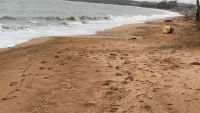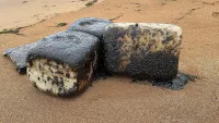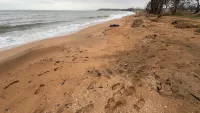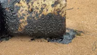 В Керчи 22 декабря на городском пляже на берег прибило мазут. Мелкими точками мазута покрыт весь берег. Также вынесло и бочки с канистрами, все испачканные.