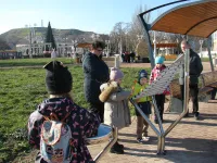 Детворе нравятся оба инструмента. Они с удовольствием играют и на уличном барабане - глюкофоне.