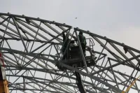 Борис Пуляев, инженер проектно-технического надзора за строительством ММГ «Скейтинг», рассказал о том, что общий вес металлоконструкций шатра - 200 тонн.