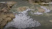 На видеозаписи — тысячи мёртвых рыб, которые лежат между камнями и плавают кверху брюхом в морской воде, их количество увеличивается с каждой новой волной. Также на берегу была найдена погибшая птица.