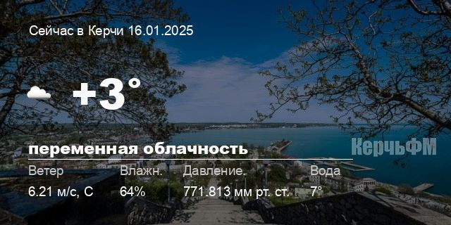 - Крым от +3.8° до +6.4°С, ☁️ пасмурно, море: 10°C