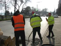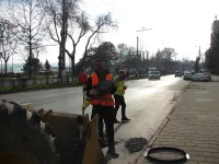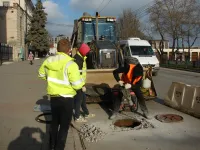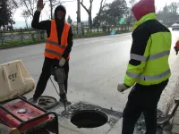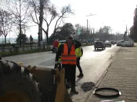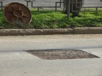 Первый этап - занижение люков колодцев коммуникаций на проезжей части дороги. Затем специальная техника беспрепятственно снимет верхний слой старого асфальта вместе с "заплатками", которых здесь предостаточно.