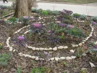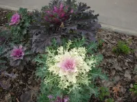 Особый восторг зимой вызывают цветы декоративной капусты. Есть и другие многолетние цветы. Особая гордость цветовода - прижившийся кипарис.