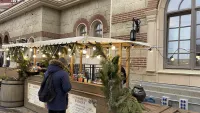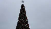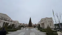 К новогодним праздникам здесь установили большую и красивую елку. Посмотрите, какая красота.