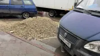 Кроме этого, рядом щебнем заняли два парковочных места, которые необходимы водителям.
