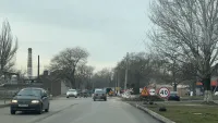 Перекрыта частично одна полоса дороги в сторону «СРЗ». Движение осуществляется реверсивно. Перед работами установили предупреждающие дорожные знаки.