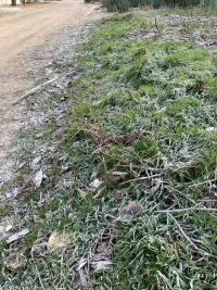 Трава покрылась инеем. Автомобили на парковках тоже подмерзли.