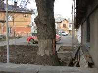 У высокого дерева, растущего возле гаражей по улице Горбульского, не совсем хорошие люди ободрали кору, передает КерчьФМ.