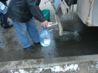 Жители высоток по Шоссе Героев Сталинграда набирают сразу по несколько пятилитровых бутылей чистой привозной воды.