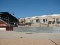На стадионе имени 50-летия Октября продолжаются работы по ремонту фасада головного здания, передает КерчьФМ.