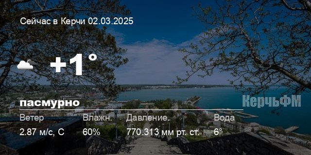 - Феодосия от +1.2° до +6.3°С, ☁️ пасмурно, море: 4°C