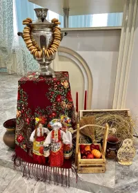 Они подготовили фотозону с русским самоваром, баранками и главным масленичным угощением - блинами.