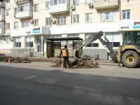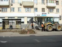 Возле остановки "Музей", на дороге, как ехать из центра, тяжелая техника роет траншею.