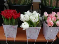 Итак, на тюльпаны можно потратить от 350 до 500 рублей за букет (3- 5 штук). Стоимость зависит от количества, сорта и самого "бокала" (так продавцы называют чашу цветка).