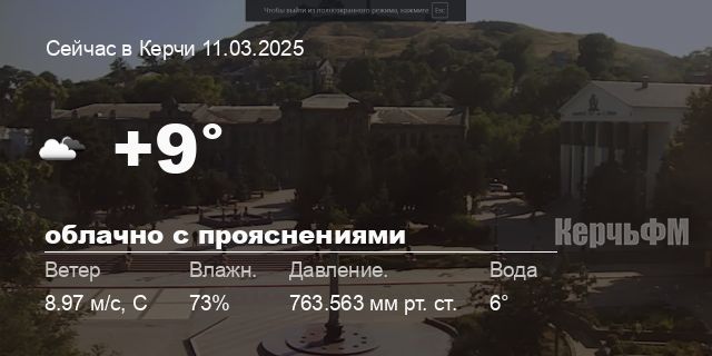 - Крым от +9.4° до +13.5°С, ☁️ пасмурно, море: 9°C