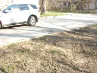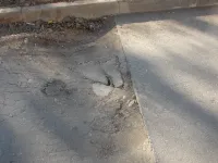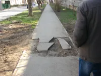 На одной линией с ней находится и разрушенный тротуар.