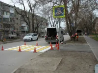 На Вокзальном шоссе в районе ж/д вокзала Керчи сегодня обновляли разметку
