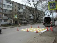 На пешеходных переходах у ж/д вокзала сегодня дорожная служба обновляла разметку, передает КерчьФМ.